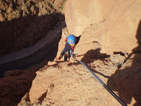 GUÉ, al cim fem un rapel de 25mt i seguim per la via du GRABE